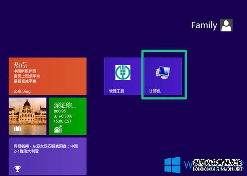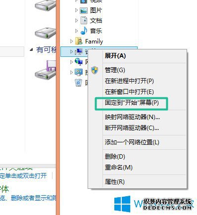 打开系统文件管理器后,单击右键展开计算机选项,然后固定到开始屏幕就可以将它在Win8的桌面列表里面显示。